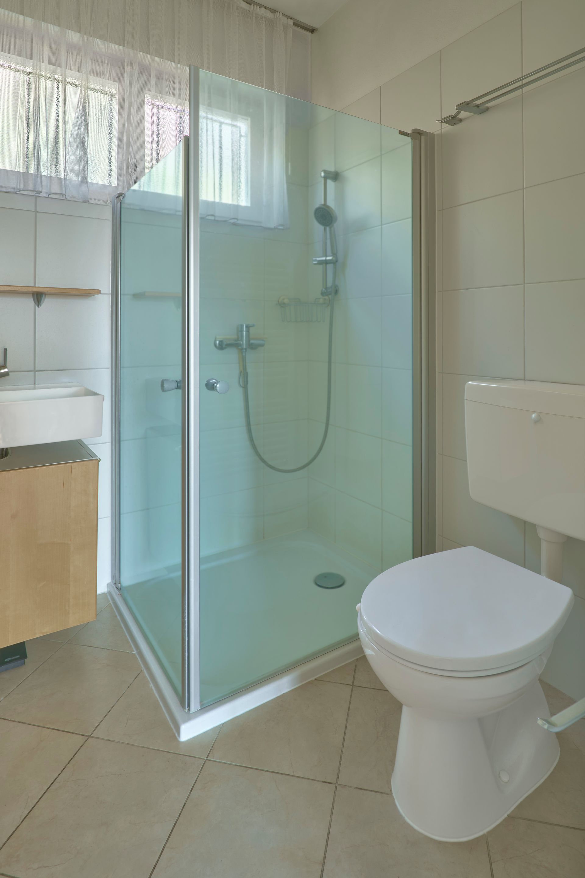 Ein modernes Badezimmer mit Dusche vervollständigt die Etage.