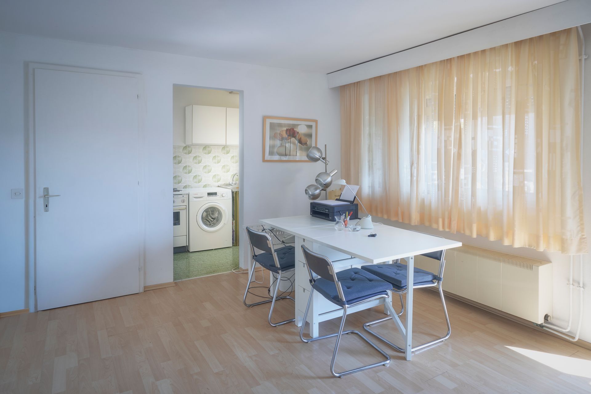 Das Erdgeschoss ist eine eigenständige Wohneinheit, die mit einem Esstisch, einem weiteren Badezimmer mit Dusche und einer kleinen Küche ausgestattet ist. Hier steht auch eine Waschmaschine zur Verfügung, um den Aufenthalt noch angenehmer zu gestalten.