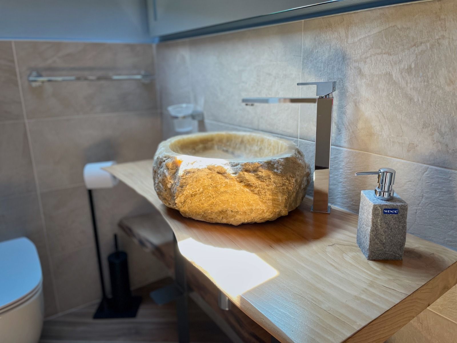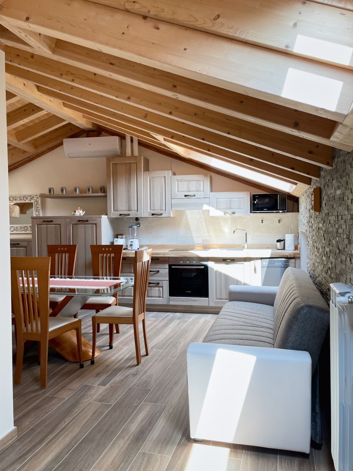 Die Unterkunft ist klimatisiert und besteht aus einem Schlafzimmer mit eigenem Bad, einem hellen Wohnzimmer mit einem bequemen Schlafsofa (für zwei Personen geeignet), einer voll ausgestatteten Küche mit Kühlschrank, Ka?eemaschine, Küchenutensilien und Waschmaschine sowie einem zweiten, voll ausgestatteten Badezimmer mit Dusche, WC und Bidet. Ein privater Parkplatz ist auf Anfrage gegen Aufpreis verfügbar. Um die Wohnung zu betreten, müssen einige Stufen überwunden werden.