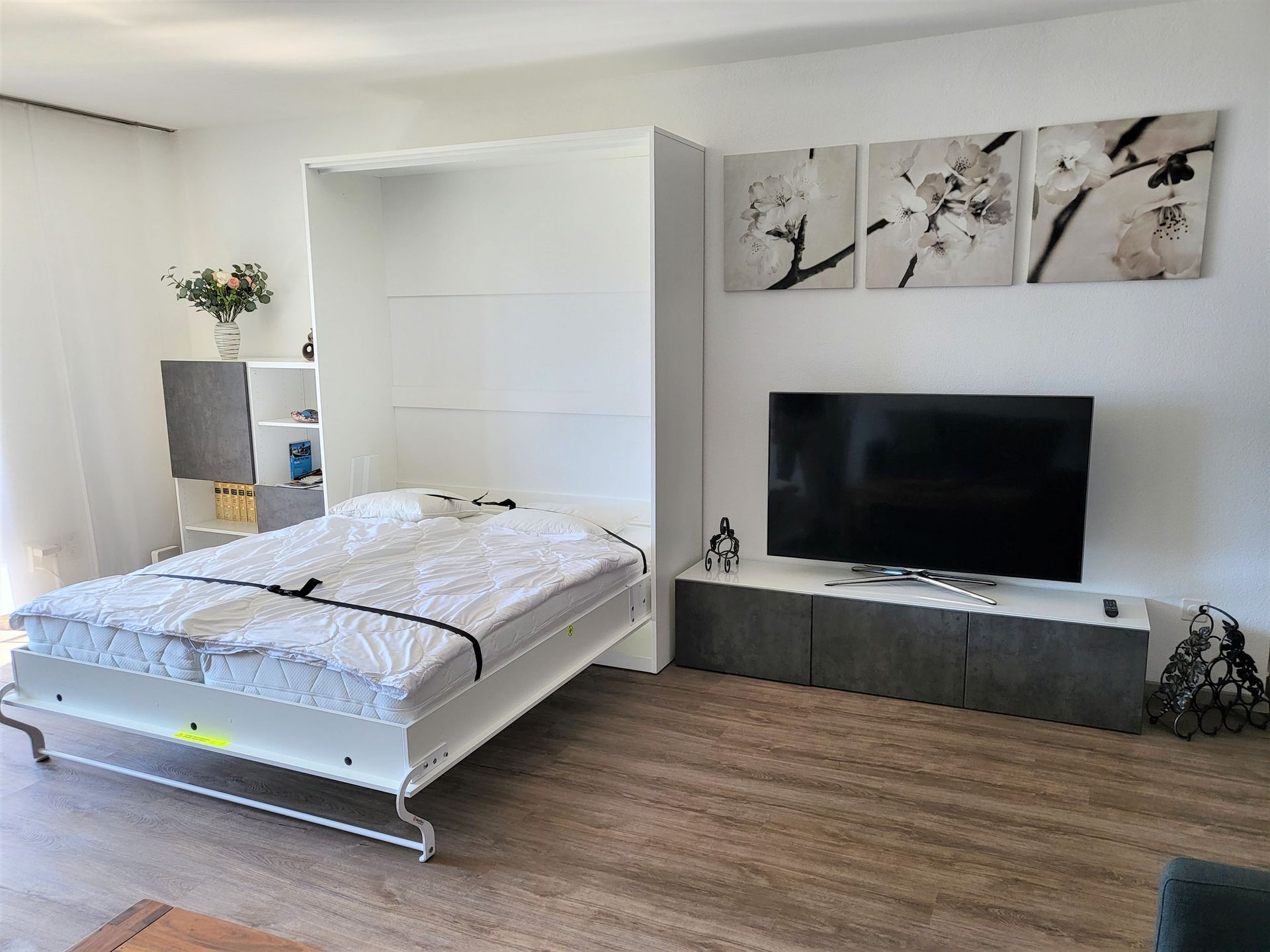 Sie bietet ein abgeschlossenes Schlafzimmer, einen grosszügigen Wohn-/Essbereich mit 2 weiteren Schlafmöglichkeiten (Schrankbetten). Eine abgeschlossene Küche sowie ein grosszügiges Badezimmer mit Badewanne und ein 2. Badezimmer mit Dusche.
