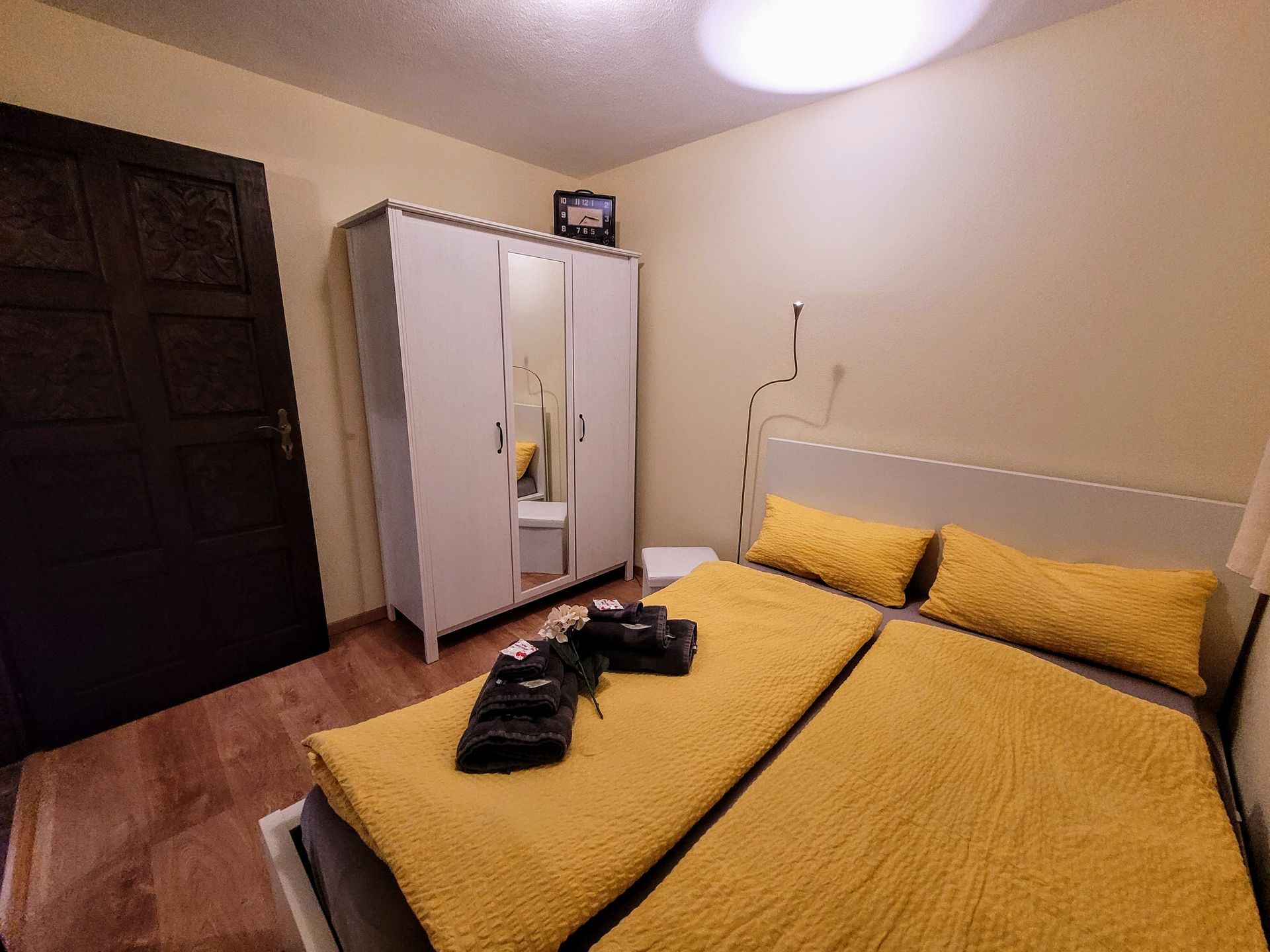 Das Feriendomizil eignet sich auch für Gäste, die nicht so gut zu Fuß sind. In der hauseigenen Tiefgarage ist ein Parkplatz für Sie reserviert. Von hier bringt Sie der Lift komfortabel in die fünfte Etage. Dann sind es nur noch ein paar Schritte und wenige Stufen, bis Sie das gemütliche Flair der Wohnung willkommen heißt.